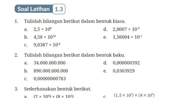 Matematika seringkali dianggap sebagai mata pelajaran yang menantang, namun dengan pendekatan yang tepat, bahkan konsep yang paling rumit pun bisa menjadi mudah dipahami. Bagi siswa kelas 8, Latihan 1.3 merupakan salah satu titik krusial dalam kurikulum yang menguji pemahaman mereka tentang berbagai topik penting. Artikel ini akan menjadi panduan komprehensif Anda, membahas secara mendalam setiap aspek dari Latihan 1.3, dilengkapi dengan contoh soal dan jawaban yang detail, serta strategi efektif untuk menaklukkan soal-soal ini.