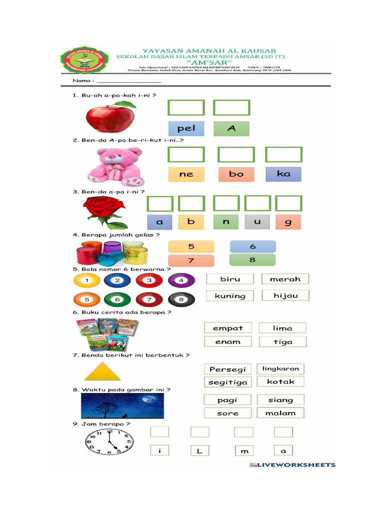 • Soal 3: Buatlah sebuah kalimat sederhana menggunakan kata "sekolah".
